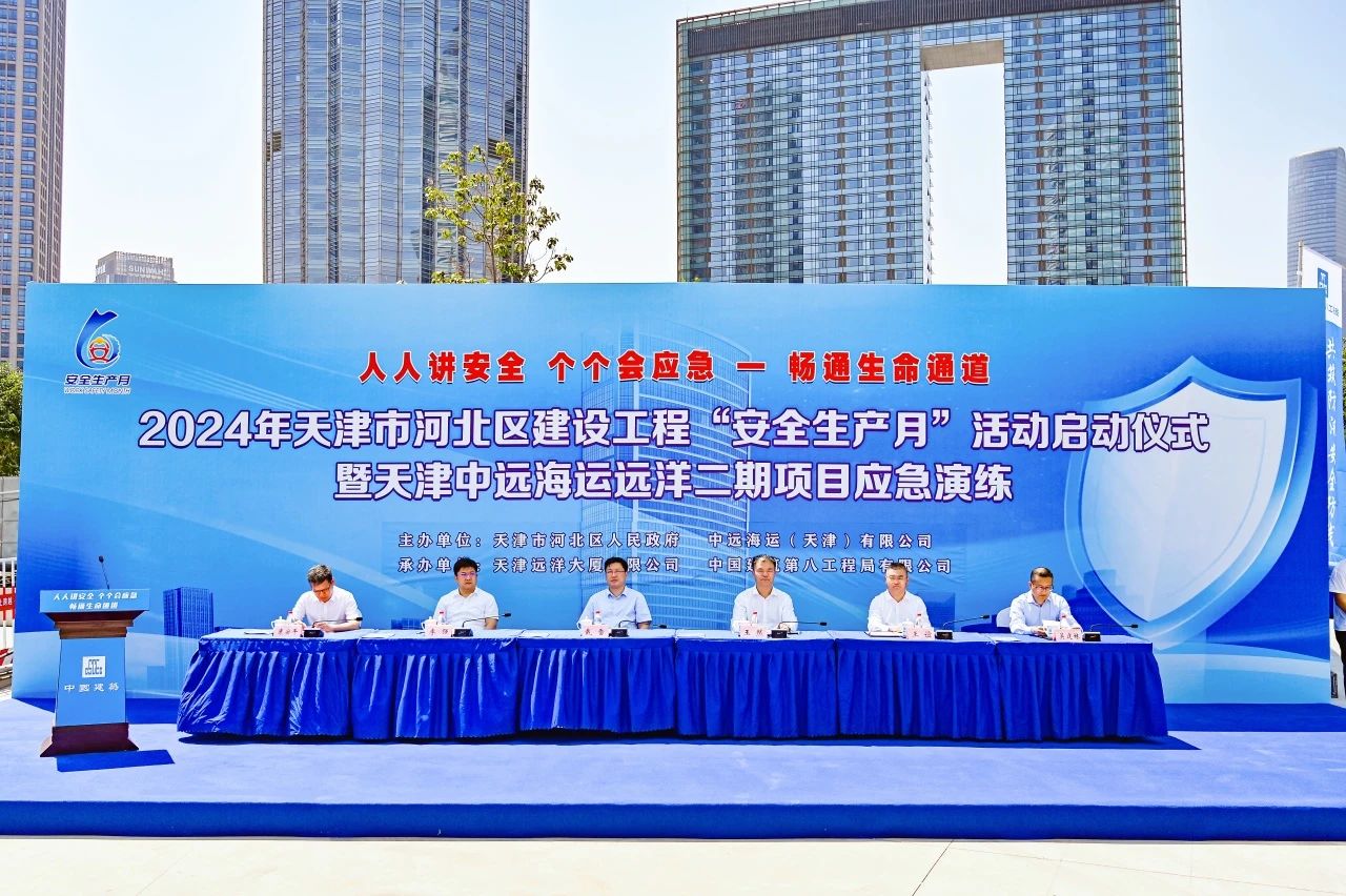 為響應(yīng)全國第23個“安全生產(chǎn)月”活動要求,6月3日,天津市河北區(qū)建設(shè)工程“安全生產(chǎn)月”啟動儀式暨項目應(yīng)急演練活動在中建八一天津中遠海運遠洋二期項目舉行。