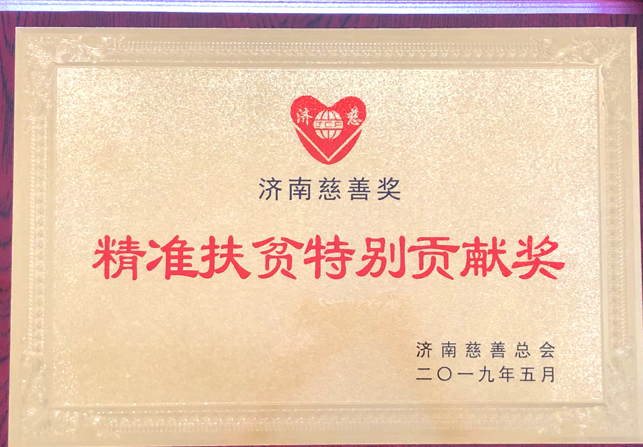 公司榮獲濟(jì)南市慈善總會(huì)頒發(fā)的精準(zhǔn)扶貧特別貢獻(xiàn)獎(jiǎng)
