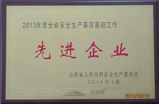公司榮獲“山東省2013年度安全生產(chǎn)基層基礎工作先進企業(yè)”榮譽稱號
