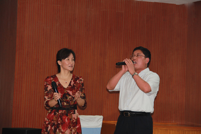 “揮揮手微笑著告別昨天,擁抱更蔥蘢的未來”,19點30分,晚會在一首《最美的答案》中拉開序幕。隨后大家紛紛亮出自己的才藝,模仿大比拼、小品、歌劇、合唱等精彩的節(jié)目將晚會逐步推入高潮。新員工王政模仿的費(fèi)玉清,無論從聲音還是形體動作上都惟妙惟肖,讓大家贊口不絕。小品《一公司小夫妻》采用經(jīng)典――《實話實說》風(fēng)格,演繹了大家眼中的一公司,其中的精彩對話讓大家捧腹。教官團(tuán)隊表演的格斗、拳術(shù)、棍術(shù)也讓大家大開眼界,為晚會增添了另一道光彩。面對現(xiàn)場熱烈的氣氛,公司領(lǐng)導(dǎo)也紛紛上臺獻(xiàn)上了精彩的表演,將整個晚會推向另一個高潮。董事長李永明為大家傾情演唱了《雨花石》和《活出個樣子來給自己看》,希望新員工們像雨花石學(xué)習(xí),經(jīng)得住平凡與寂寞,在平凡的崗位上做出不平凡的業(yè)績。黨委書記許紅聲情并茂,為大家朗誦了詩歌《青春萬歲》,展現(xiàn)了青春的無限美好與活力,她還演唱了《隱形的翅膀》,鼓勵大家在逆境中也要善于看到希望,堅強(qiáng)的奮斗下去。人力資源總監(jiān)王有標(biāo)也為大家演唱了《凡人歌》,贏得了陣陣掌聲。培訓(xùn)人員工作團(tuán)隊也為大家獻(xiàn)上了《相逢是首歌》。