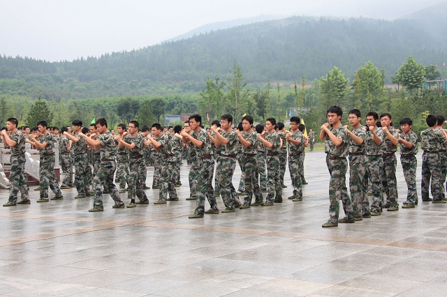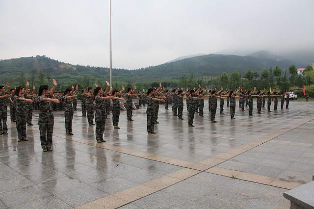在李董事長的指示下,伴隨著雄壯的《中國人民解放軍進行曲》,新員工們身著迷彩,邁著整齊有力的步伐走過主席臺,進行了列隊式、分列式等表演?!傲钚薪梗姑剡_”,伴隨著嘹亮的口號,二連的男員工們表演了虎虎生威的軍體拳。巾幗不讓須眉,在交通指示動作的表演中,女員工們的颯爽英姿也給人留下了深刻的印象。新員工們整齊劃一的動作、飽滿向上的狀態(tài)贏得了陣陣掌聲,充分展現(xiàn)了八局新兵的鐵軍精神和氣概。最后,隨著全體新員工手語操表演――《感恩的心》的結(jié)束,整個軍訓(xùn)匯報表演畫上了圓滿的句號。