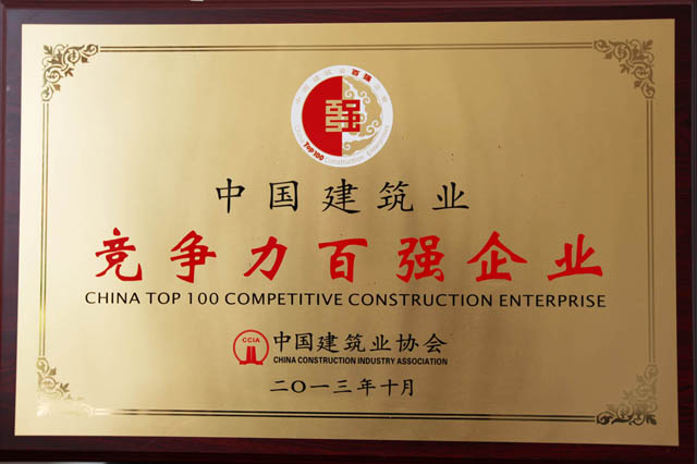 公司榮獲中國(guó)建筑業(yè)競(jìng)爭(zhēng)力百?gòu)?qiáng)企業(yè)稱號(hào)