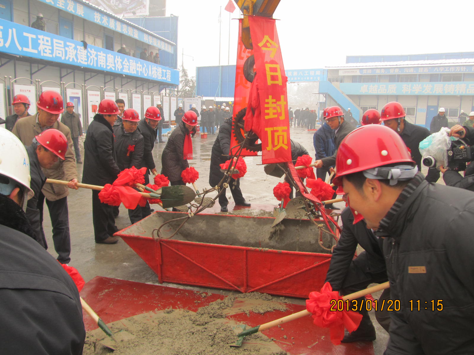 1月20日,奧體金融中心A棟樓項(xiàng)目隆重舉行主體封頂儀式。山東省農(nóng)村信用社聯(lián)合社理事長、黨委書記宋文�及聯(lián)合社全體班子成員、聯(lián)合社駐濟(jì)各機(jī)構(gòu)負(fù)責(zé)人、魯班置業(yè)及監(jiān)理公司負(fù)責(zé)人、公司黨委書記許書記、黨委副書記、工會主席董書記參加了封頂儀式。
