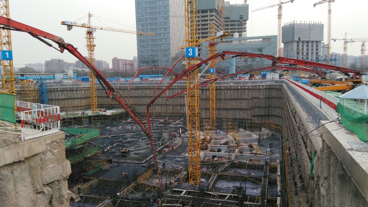 2015年的冬天,比以往更“特殊”一些――北京遇到了近30年來最大規(guī)模的寒潮,氣溫最低降至零下16攝氏度。盡管如此,項(xiàng)目部毅然將13360m³體量的基礎(chǔ)底板順利澆筑完成。