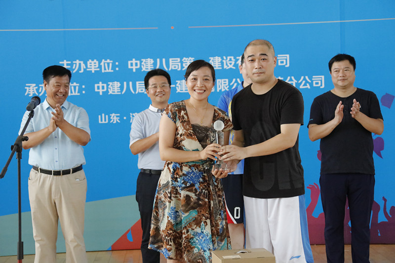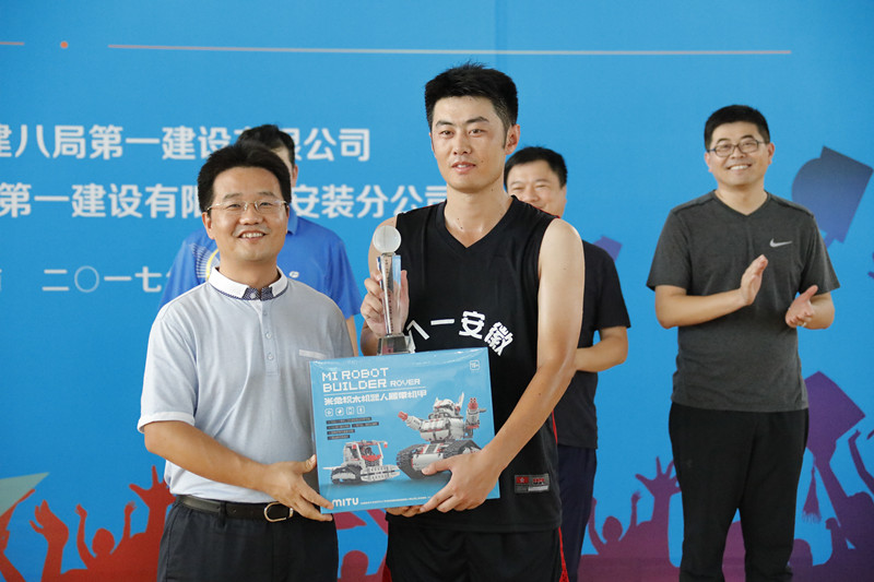 一公司安裝分公司黨總支書記、工會主席梁忠誠為最有價值球員(MVP)頒獎