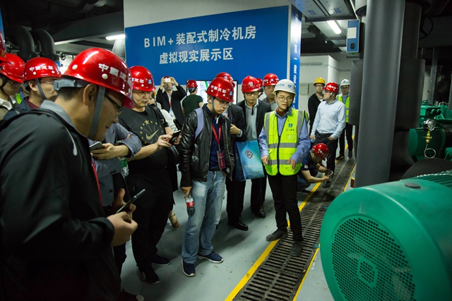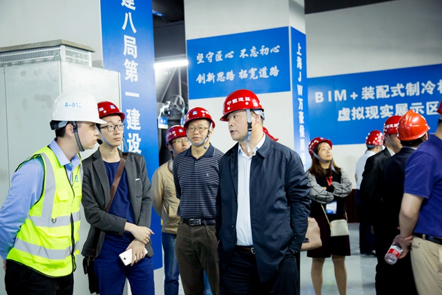 此次觀摩,中國安裝協(xié)會副會長兼秘書長楊存成,副秘書長兼科技推廣部主任唐忠赤,上海市安裝行業(yè)協(xié)會秘書長劉建偉,中國安裝協(xié)會BIM應用與智慧建造分會常務副會長王剛等相關領導共同參與。觀摩過程中,楊存成這樣對管理人員說道:“該項目機房結(jié)構復雜,排布條件差,設備多,管線復雜,如果沒有BIM做引領,真的很難想象現(xiàn)場能夠有如此的施工精度,八局一在BIM技術行業(yè)真是處于領先地位!”