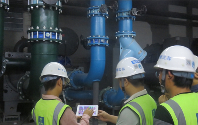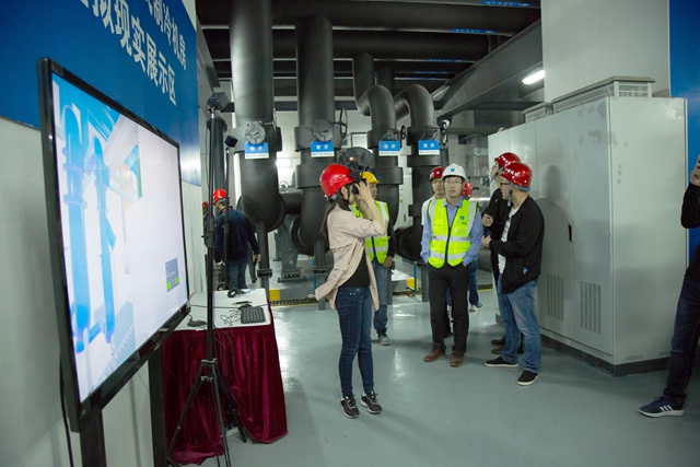 管理人員為觀摩隊伍現(xiàn)場講解制冷機房