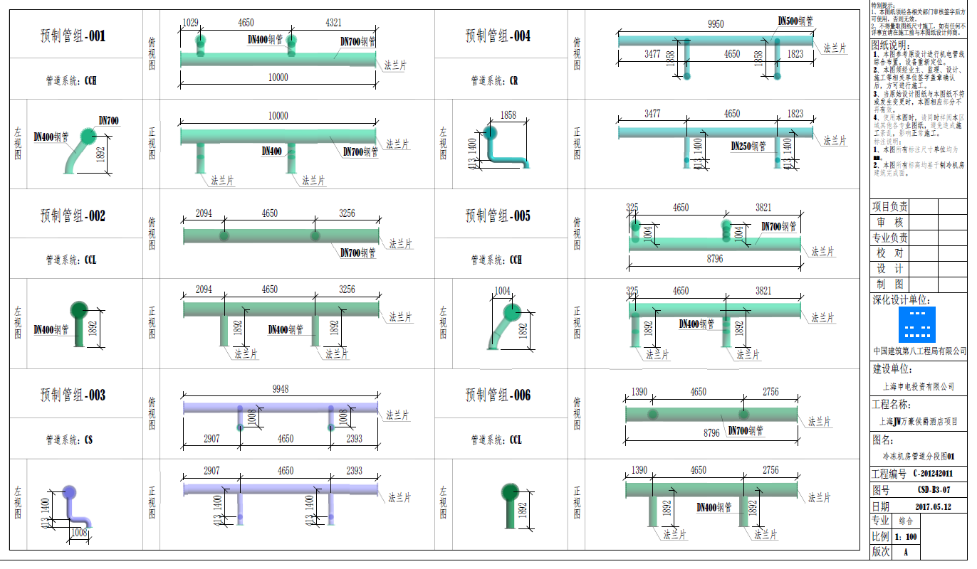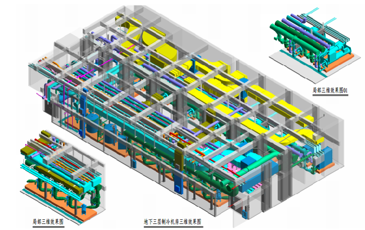 項目制冷機房建筑面積780㎡,整個機房共有管道993.7米,螺栓4306個,管道共分段142塊。項目通過“BIDA一體化”工程技術體系,7天內(nèi)實現(xiàn)制冷機房“魔術般”的從無到有。