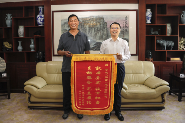 5月23日下午,山東省委辦公廳行政處長于波專程蒞臨公司總部,為公司送來“敦本務實,鐵軍擔當;主動服務,完美履約”的錦旗。