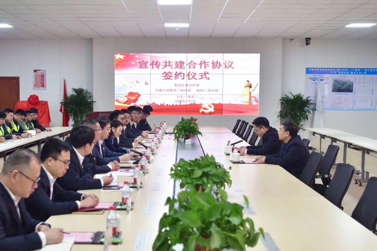 2月2日,濟(jì)南市萊蕪區(qū)委宣傳部與萊蕪“兩清零,一提標(biāo)”項(xiàng)目部舉行宣傳共建合作協(xié)議簽約儀式。萊蕪區(qū)委常委、宣傳部部長(zhǎng)田沖,宣傳部副部長(zhǎng)紀(jì)榮軍,中建八局一公司黨委副書記、工會(huì)主席聶麗,黨委工作部(企業(yè)文化部)、八局建投相關(guān)負(fù)責(zé)人、項(xiàng)目代表參加。