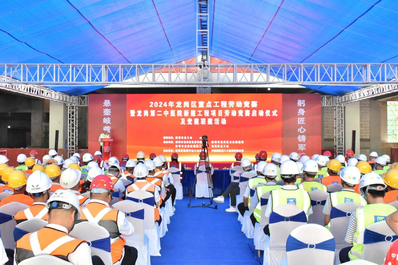為激發(fā)建設(shè)者勞動熱情,全力奮戰(zhàn)二季度,5月15日,2024年龍崗區(qū)重點工程勞動競賽暨龍崗第二中醫(yī)院項目勞動競賽啟動儀式及黨建聯(lián)建活動在中建八局承建的龍崗第二中醫(yī)院項目舉辦。