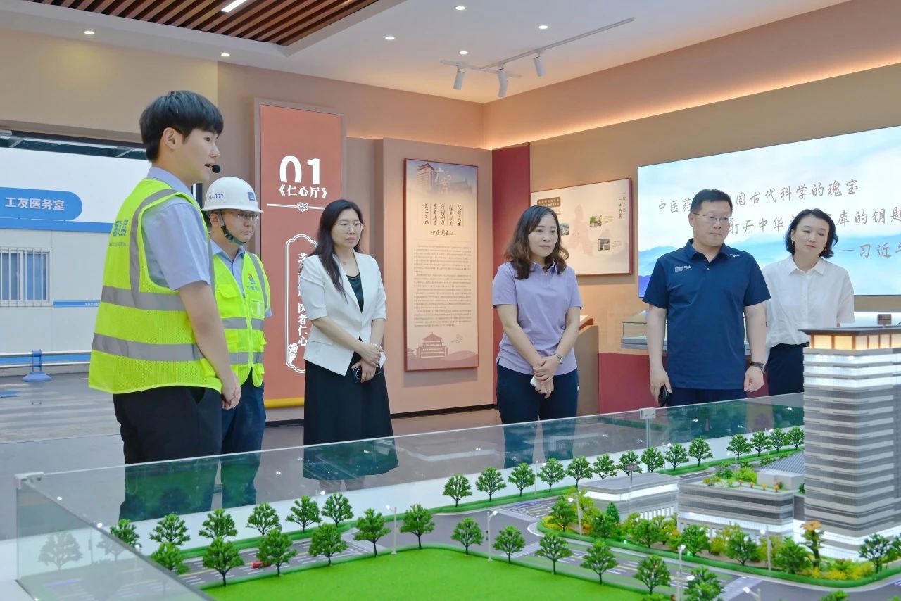 期間,王曉波一行參觀了項目綜合展廳,對項目低碳建造、人才培養(yǎng)、工會工作、黨建融入生產(chǎn)經(jīng)營等方面工作給予充分肯定。