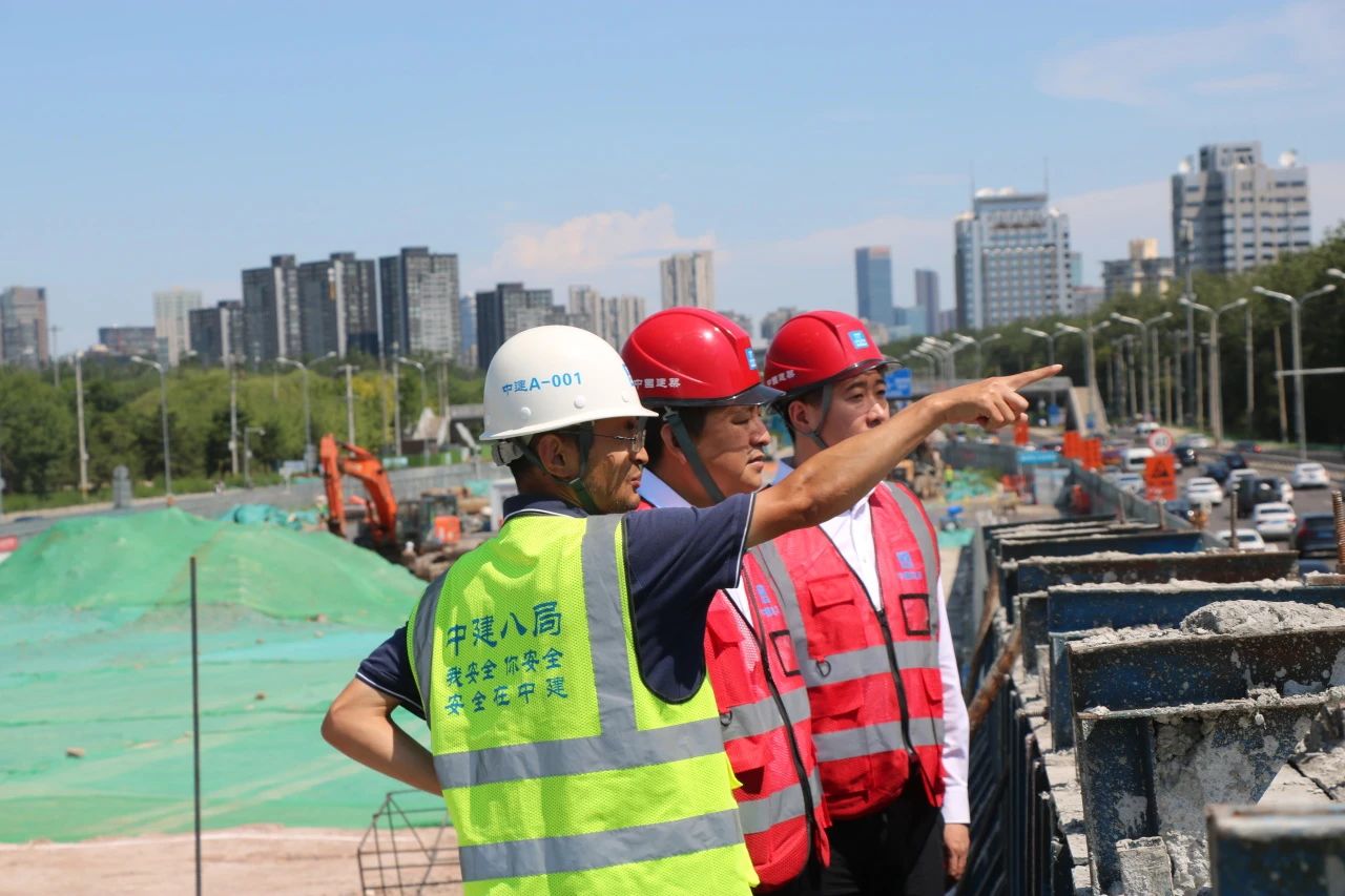 6月25日,中建八局一公司黨委副書記、總經(jīng)理?;瘧椀奖本┮覉@北街道路工程1#標(biāo)段開展“四不兩直”安全帶班檢查。