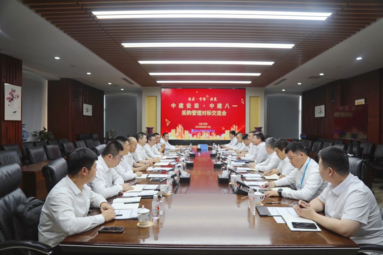 中建安裝采購管理中心總經(jīng)理李樂、采購管理中心、一公司相關負責人;中建八局一公司副總經(jīng)理、總經(jīng)濟師、總法律顧問兼首席合規(guī)官周春雨,采購管理部、濟南公司、安裝公司相關負責人參加交流。