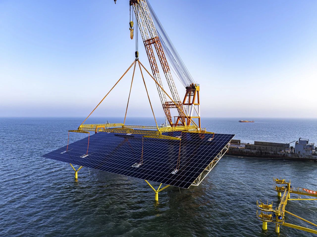 近年來(lái),海上光伏成為一種全新的海洋能源利用和資源開(kāi)發(fā)方式,是指在海面上建立的光伏電站,主要分為樁基式和漂浮式兩種類型,現(xiàn)階段以樁基式為主,安裝時(shí)采用“陸上預(yù)安裝+海上吊裝”模式,即在陸地上完成大部分的安裝,直接運(yùn)到近海,將“腿”深深地扎入海平面以下的巖土中,在海底“長(zhǎng)出”太陽(yáng)能電池板。