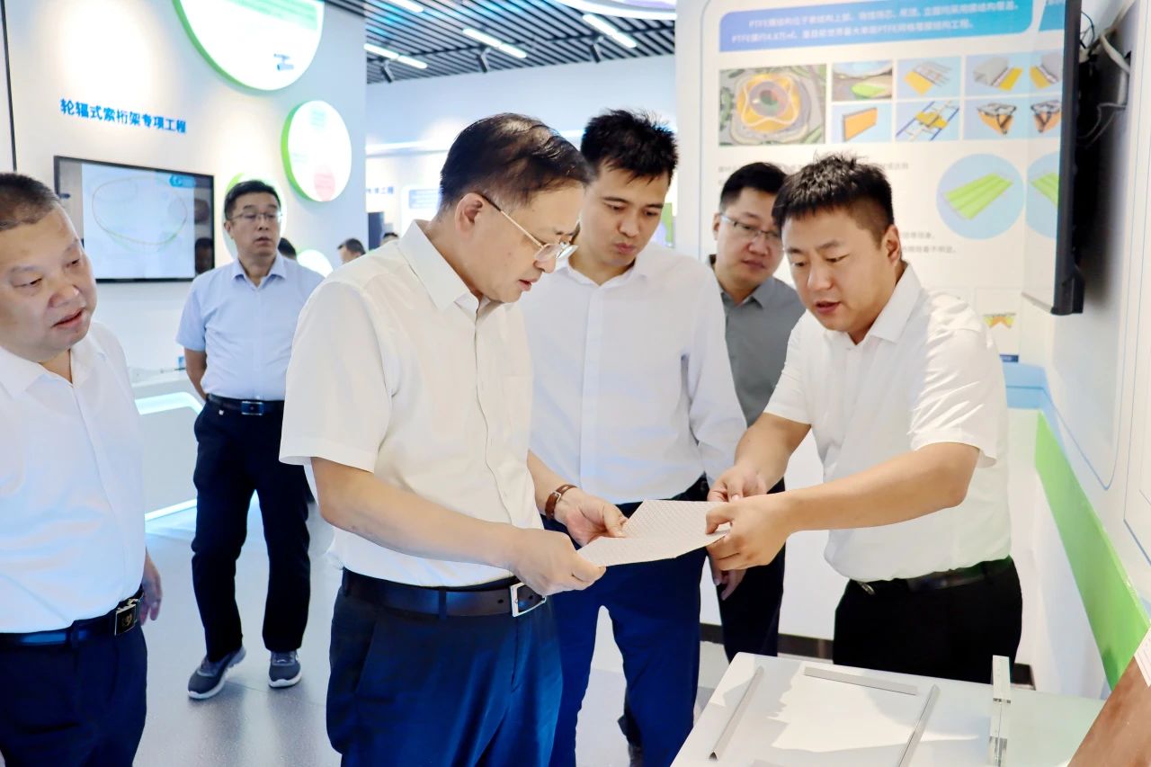 王潤曉一行深入施工現(xiàn)場,實(shí)地察看項(xiàng)目施工進(jìn)展,詳細(xì)詢問安全質(zhì)量管理、技術(shù)創(chuàng)新等內(nèi)容,深入了解當(dāng)前鋼結(jié)構(gòu)拼裝、吊裝施工等重難點(diǎn)問題,參觀了項(xiàng)目綜合展廳,認(rèn)真聽取公司發(fā)展歷程、項(xiàng)目定位特點(diǎn)、創(chuàng)新技術(shù)應(yīng)用、黨群廉潔工作等情況介紹。
