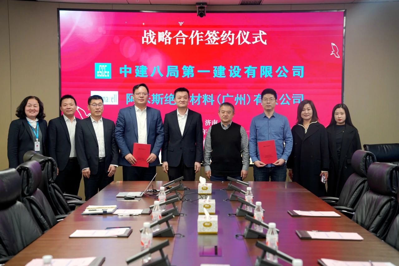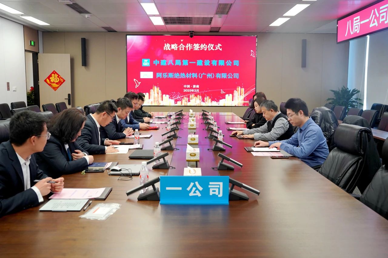 2月13日,中建八局一公司與阿樂斯絕熱材料(廣州)有限公司舉行戰(zhàn)略合作簽約儀式,阿樂斯中國區(qū)技術(shù)銷售總監(jiān)沙建華及相關(guān)負責(zé)人;中建八局一公司副總經(jīng)理、總工程師谷力,工程研究院、綠色建筑發(fā)展公司相關(guān)負責(zé)人參加簽約儀式。