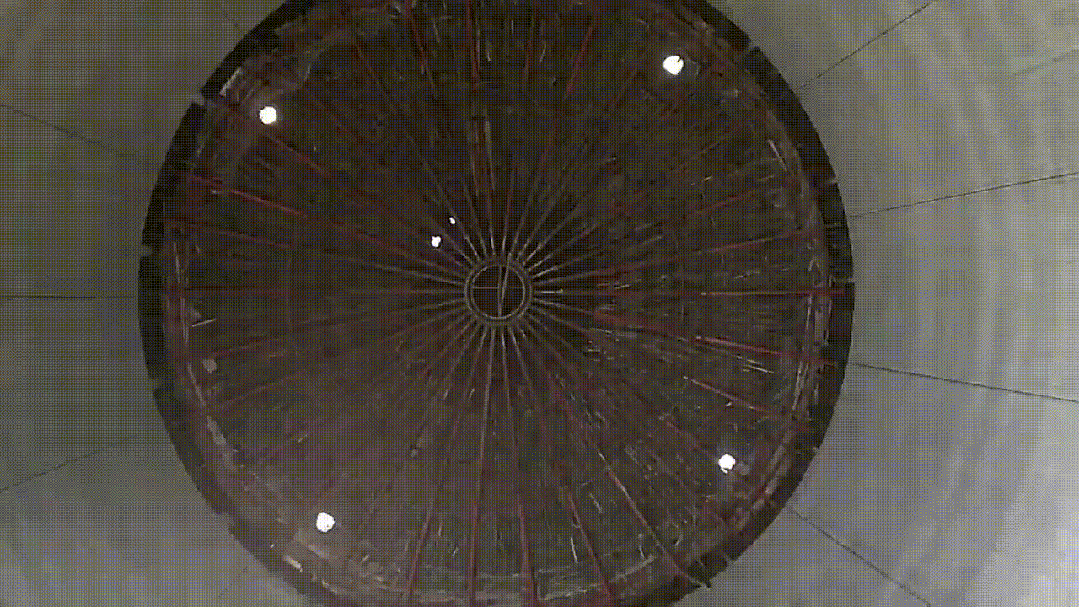 為保證產(chǎn)品性能達到預(yù)期,中建八局一公司在煙臺某項目開展實地測試,在倉頂傘桁架部署30個監(jiān)測節(jié)點,累計監(jiān)測位移、拉力等數(shù)據(jù)3萬條。經(jīng)驗證,系統(tǒng)運行過程中傘桁架吊點間拉力同步偏差控制在1.5千牛以內(nèi),下降高度同步相鄰點位高差控制在20毫米以內(nèi),模擬電動葫蘆失效等預(yù)警場景糾偏程序均自動觸發(fā),測試結(jié)果達到預(yù)期各項目標。