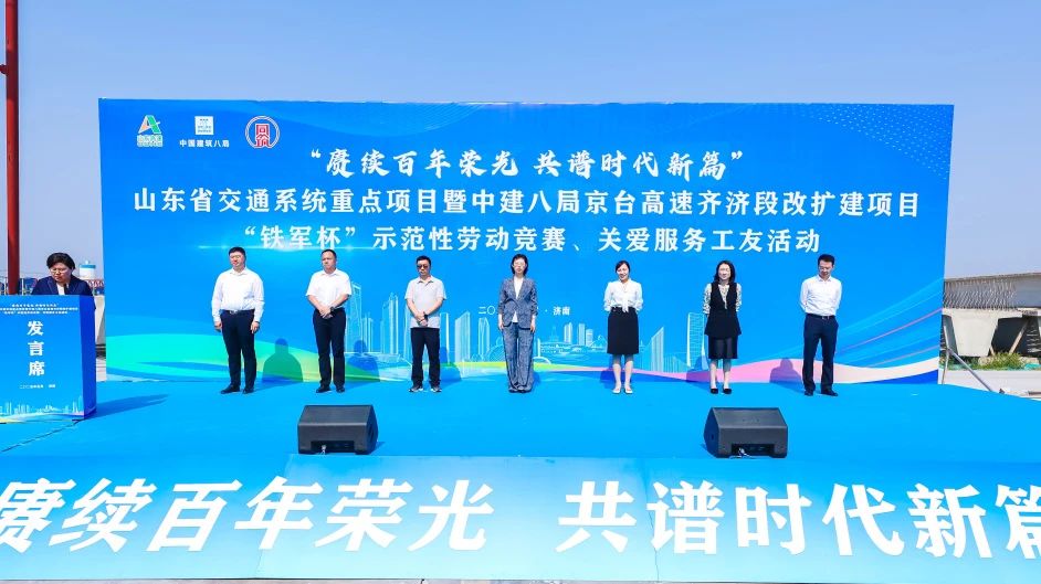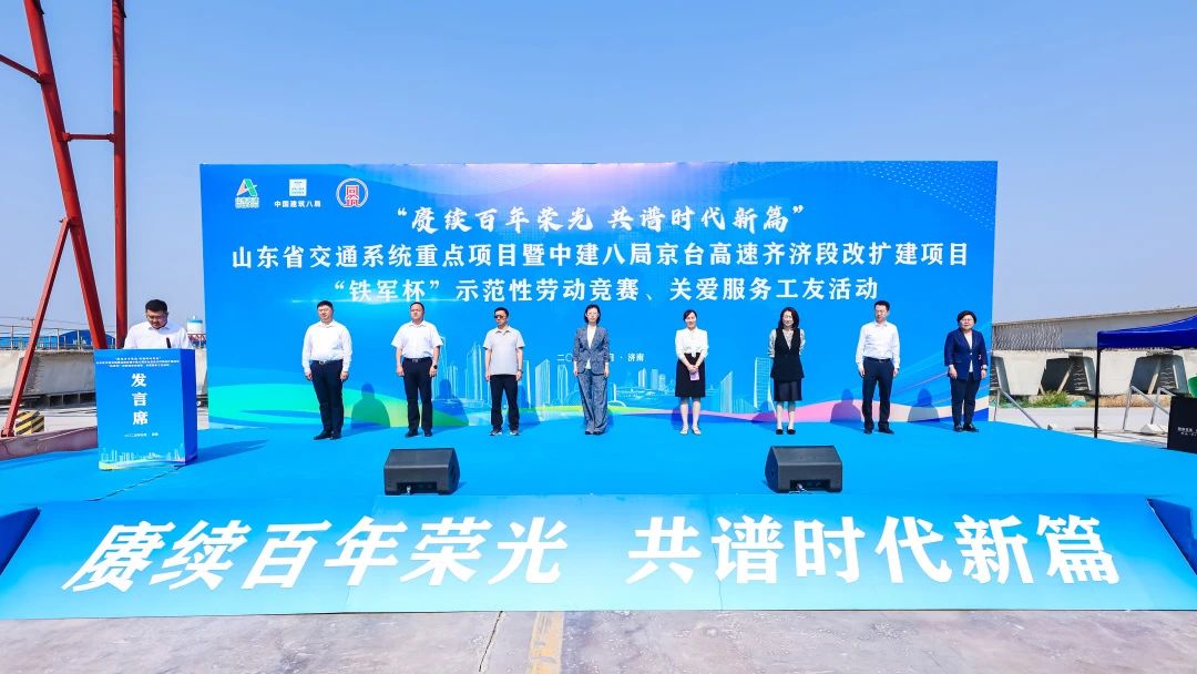 開啟夏日攻堅(jiān),建功交通強(qiáng)國。5月27日,山東省交通系統(tǒng)重點(diǎn)項(xiàng)目暨中建八局“鐵軍杯”示范性勞動(dòng)競賽、關(guān)愛服務(wù)工友活動(dòng)在中建八局承建的京臺(tái)高速齊濟(jì)段改擴(kuò)建項(xiàng)目正式啟動(dòng),吹響履約奮進(jìn)“沖鋒號(hào)”。