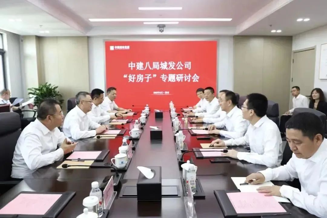 期間,吳愛國一行先后前往中建八局投資建設(shè)運營的中國建筑綠色產(chǎn)業(yè)園(濟南)、中建綠色新型材料科技產(chǎn)業(yè)園調(diào)研,并開展“好房子”專題研討。