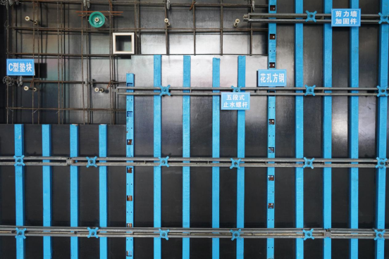 清水混凝土以其本身的質(zhì)感、顏色與紋理作為飾面,具有質(zhì)樸無(wú)華、返璞歸真的外觀,研發(fā)了剪力墻模板工程增強(qiáng)體系,極大改善了模板拼縫、螺栓孔眼以及墻體轉(zhuǎn)角處的失水漏漿情況,使用BIM技術(shù)進(jìn)行排版,提前識(shí)別碰撞,明確預(yù)留洞口、明縫、蟬縫以及螺栓眼的位置,讓“點(diǎn)線面體”在統(tǒng)一風(fēng)格下規(guī)范、美觀。