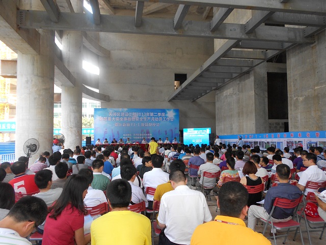5月31日,由廣州市天河區(qū)建設(shè)和水務(wù)局主辦的現(xiàn)場觀摩會在珠江新城F1-1項目召開,廣州市天河區(qū)區(qū)委常委、常務(wù)副區(qū)長藍小環(huán)、天河區(qū)建設(shè)和水務(wù)局局長許文進、天河區(qū)安全生產(chǎn)監(jiān)督管理局執(zhí)法分局局長李守軍、廣州市建委質(zhì)安處處長王大通、天河區(qū)建設(shè)工程質(zhì)量安全監(jiān)督站副站長蔡文專及全站監(jiān)督員、中國建筑股份有限公司駐廣東辦事處市場處處長鄭順、中國建筑第八工程局有限公司廣州辦事處楊深奎、一公司廣東分公司總經(jīng)理范廣合、書記程建真及分公司領(lǐng)導(dǎo)班子其他成員、僑鑫集團地產(chǎn)總裁黃衛(wèi)平、廣州宏達工程顧問有限公司總經(jīng)理張全喜和天河區(qū)內(nèi)一百多個在建項目的建設(shè)單位、施工單位、監(jiān)理單位項目負責(zé)人合共350余人參加了觀摩會。