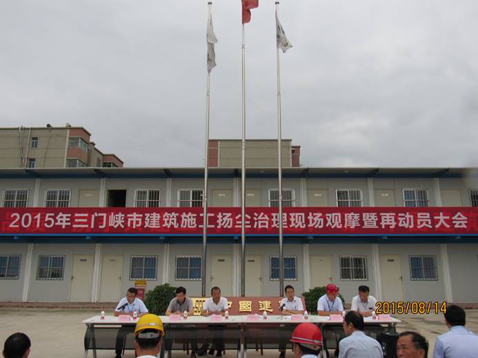 在項(xiàng)目會議室,楊青黑局長作了發(fā)言,三門峽萬達(dá)廣場投資有限公司總經(jīng)理葉斌、項(xiàng)目負(fù)責(zé)人孫金輝、建研凱勃項(xiàng)目總監(jiān)金成春先后介紹了現(xiàn)場揚(yáng)塵管理措施;董清華副局長、石順剛副局長,重點(diǎn)宣講了揚(yáng)塵治理百日行動專項(xiàng)方案。