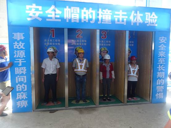 在項目安全總監(jiān)朱廣帝的代領(lǐng)下,農(nóng)民工來到體驗館,分別進行了“安全帶使用體驗”、“滅火器使用安全體驗”、“綜合用電體驗”、“移動式操作平臺安全體驗”、“安全帽撞擊體驗”、“洞口墜落安全體驗”、“平衡木安全體驗”、“安全防護欄桿的倒塌體驗”等多個項目的體驗。體驗結(jié)束后,項目管理人員還采用電視講解的方式,通過多起安全事故案例,讓農(nóng)民工深切地體會到安全作業(yè)的重要性,自覺學習、掌握安全生產(chǎn)教育的知識。