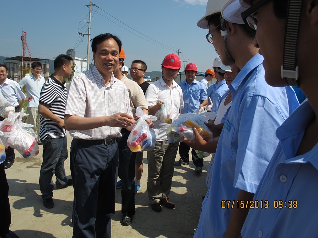 連日來,湖州持續(xù)高溫,7月15日上午,湖州市委書記馬以一行蒞臨湖州體育場(chǎng)項(xiàng)目部,對(duì)在高溫天氣下工作的人員進(jìn)行慰問。