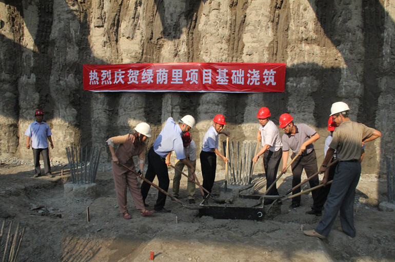 6月30日5時(shí)16分,在天津魯能綠蔭里項(xiàng)目施工現(xiàn)場,天津魯能置業(yè)有限公司總經(jīng)理黃先可,副總經(jīng)理郭廣森,北京分公司經(jīng)理張述堅(jiān)、總工兼天津魯能綠蔭里項(xiàng)目經(jīng)理王洪共同拿起鐵鍬為項(xiàng)目墊層澆筑第一批混凝土,標(biāo)志著魯能綠蔭里項(xiàng)目正式進(jìn)入地下結(jié)構(gòu)施工階段。