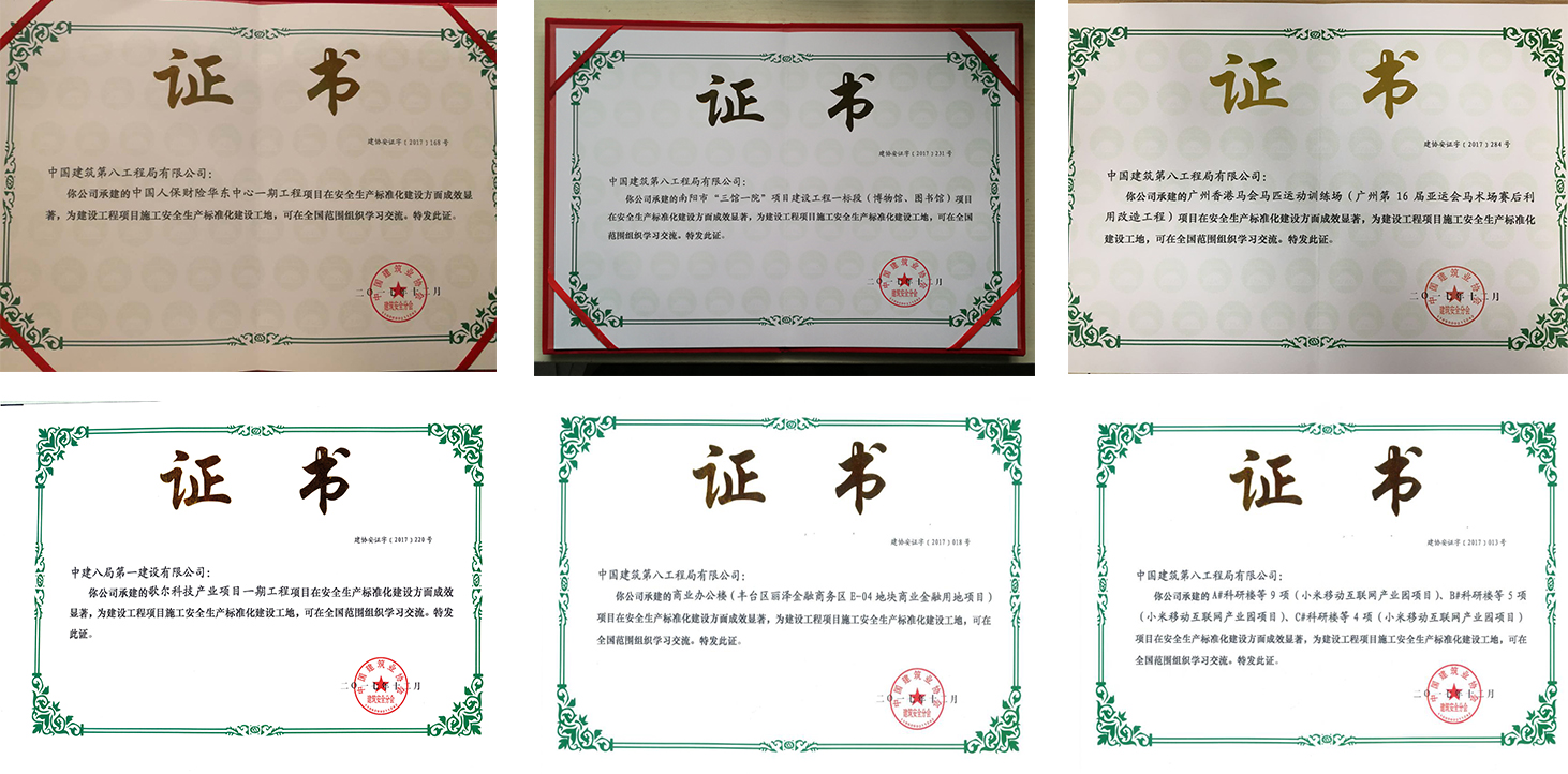 公司青島歌爾科技產(chǎn)業(yè)項目、北京麗澤soho項目、北京小米移動互聯(lián)網(wǎng)產(chǎn)業(yè)園項目、廣州香港馬會馬匹運動訓(xùn)練場項目、南陽市三館一院項目、合肥中國人保財險華東中心一期工程項目等6個項目獲評2017年度“建設(shè)工程項目施工安全生產(chǎn)標準化工地”稱號。