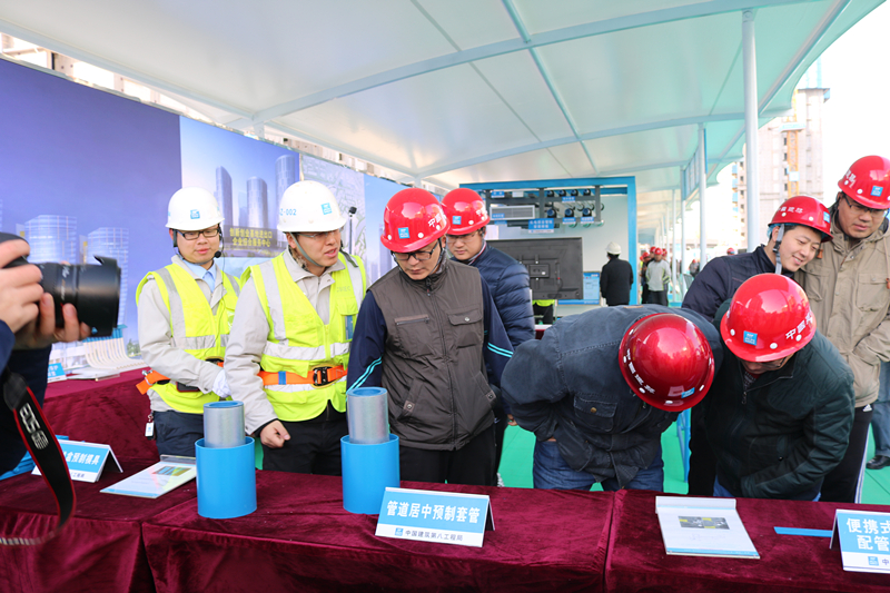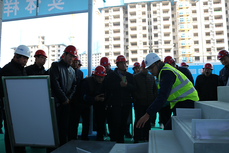 觀摩團(tuán)一行首先在項(xiàng)目會(huì)議室聽取了項(xiàng)目關(guān)于“新技術(shù)應(yīng)用、質(zhì)量常見問題的亮點(diǎn)做法、BIM應(yīng)用于智慧建造、揚(yáng)塵治理措施”等介紹。隨后,觀摩團(tuán)在項(xiàng)目經(jīng)理張志剛的引導(dǎo)下,先后參觀了海綿城市、透視混凝土地面、鋼板道路、風(fēng)光互補(bǔ)太陽能路燈、新技術(shù)應(yīng)用樣板展示區(qū)、各分項(xiàng)工程亮點(diǎn)做法展示區(qū)、智慧建造體驗(yàn)館、工序樣板層和交房樣板層、安全體驗(yàn)區(qū)。截至26日下午17時(shí),項(xiàng)目當(dāng)天已累計(jì)接待觀摩人員2125人,預(yù)計(jì)27日觀摩人數(shù)將達(dá)到3000余人。
