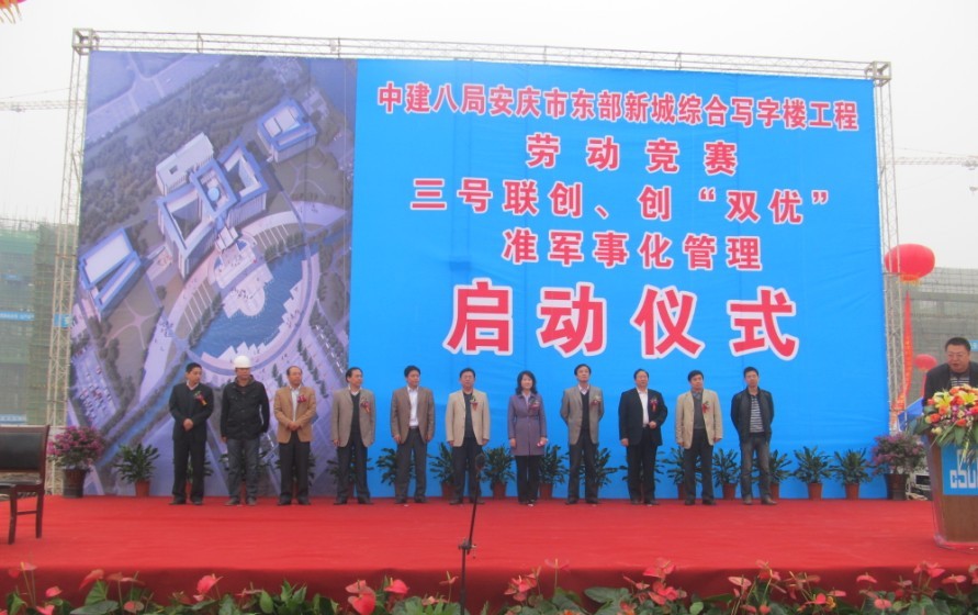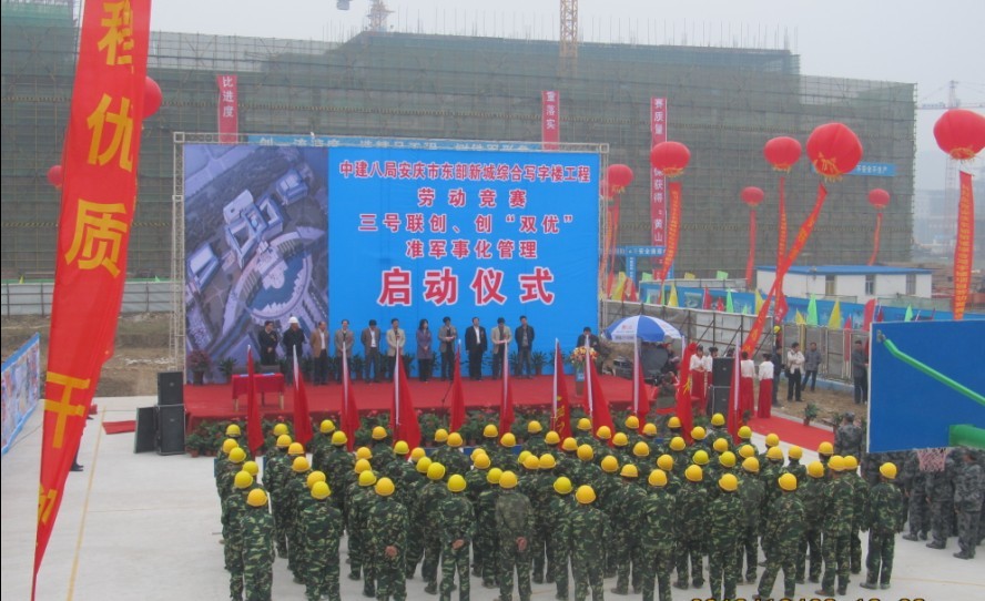 安慶市東部新城綜合寫(xiě)字樓工程舉行勞動(dòng)競(jìng)賽、“三號(hào)聯(lián)創(chuàng)”、創(chuàng)雙優(yōu)、準(zhǔn)軍事化管理啟動(dòng)儀式