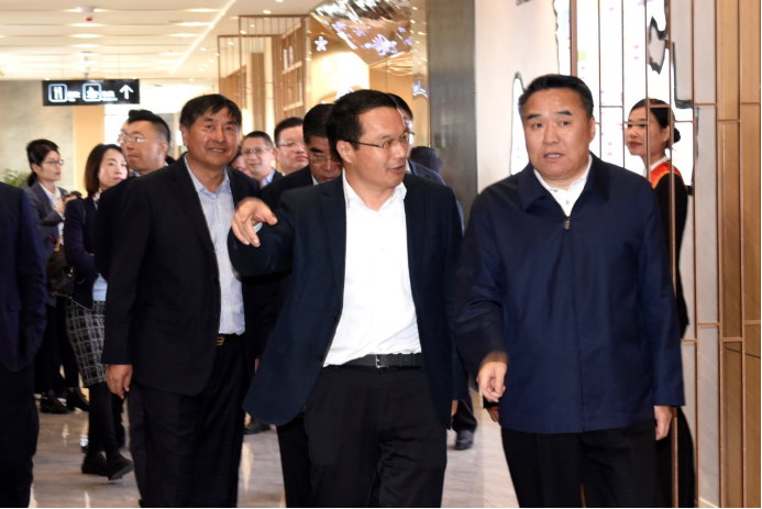 董文祥向山東高速集團(tuán)黨委書(shū)記、董事長(zhǎng)鄒慶忠介紹安丘服務(wù)區(qū)情況