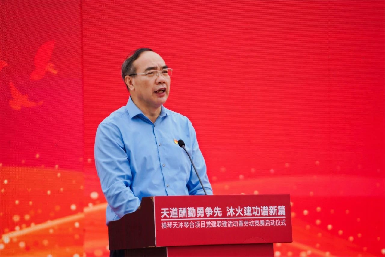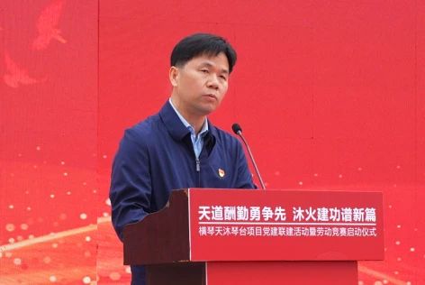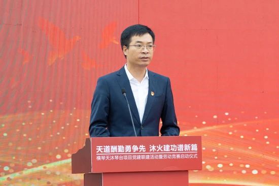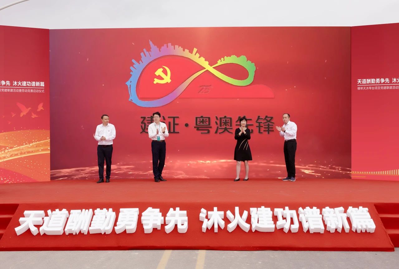 3月28日,橫琴天沐琴臺項目舉辦黨建聯建暨勞動競賽啟動儀式,按下項目建設“快進鍵”。廣東省委橫琴工委黨建工作處處長童鐵丁,珠海市總工會黨組書記、常務副主席唐尚洪,橫琴粵澳深度合作區(qū)行政事務局副局長張文驥,城市規(guī)劃和建設局住房保障處處長鄭慧仙,珠海大橫琴集團有限公司副總經理祝杰,珠海大橫琴置業(yè)有限公司黨總支書記、董事長唐文彬,中建八局華南分局黨委書記郭青松,中建八局一公司華南公司執(zhí)行總經理、工會主席張志剛,以及各參建單位代表、工友代表參加活動。
