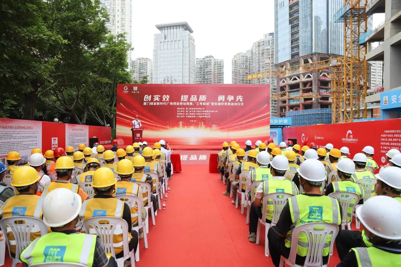 5月30日,廈門綠發(fā)新時(shí)代廣場(chǎng)項(xiàng)目舉辦勞動(dòng)競(jìng)賽、“三號(hào)聯(lián)創(chuàng)”暨安康杯競(jìng)賽啟動(dòng)儀式,吹響建設(shè)沖鋒號(hào),朝著B塔樓百米目標(biāo)全力沖刺。
