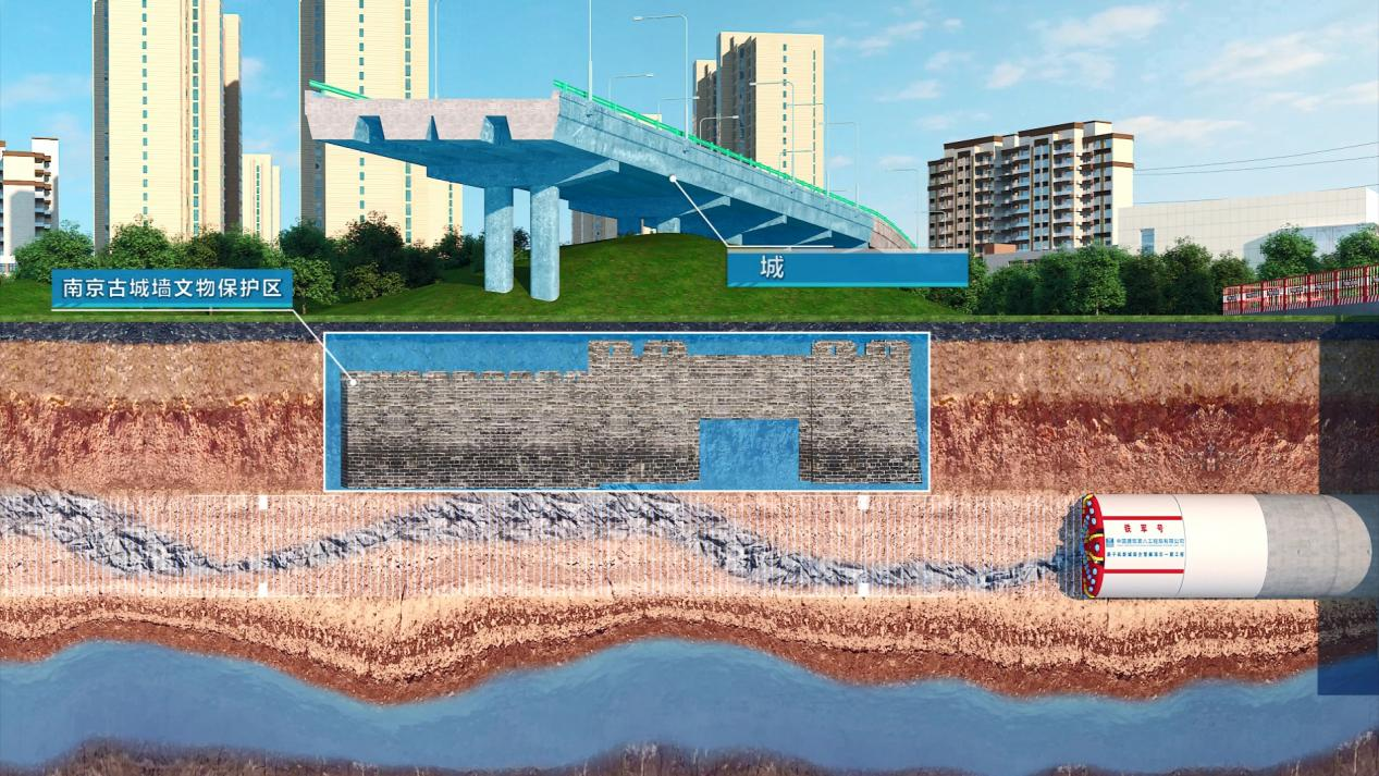 土城頭文物保護(hù)區(qū)段,為南京古城墻保護(hù)范圍,項(xiàng)目施工穿越的區(qū)域,距離地表17米,距離古城墻僅5米。該地層復(fù)雜多變,對(duì)沉降控制要求高,為最大限度保護(hù)文物,項(xiàng)目采用先小后大的頂進(jìn)方式逐個(gè)頂進(jìn),全程做好地表數(shù)據(jù)觀(guān)測(cè),并采用深層位移感應(yīng)裝置收集地下位移數(shù)據(jù)變化,實(shí)現(xiàn)所有數(shù)據(jù)均在安全范圍內(nèi),最終實(shí)現(xiàn)完美頂進(jìn)。