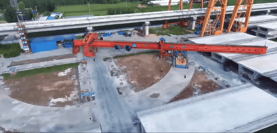 在開(kāi)啟小里程方向架梁前,由于架橋機(jī)設(shè)備長(zhǎng)、重量大,為單向作業(yè)機(jī)械,無(wú)法如汽車(chē)般倒車(chē)后退,需要從橋面移至地面進(jìn)行調(diào)頭作業(yè),涉及施工程序復(fù)雜、過(guò)程控制要求高。項(xiàng)目團(tuán)隊(duì)精心策劃,合理安排梁場(chǎng)施工任務(wù),避免架橋機(jī)撞擊梁體,做好場(chǎng)地測(cè)量、換填平整與硬化工作,確保調(diào)頭作業(yè)面充足、承載力足夠。2臺(tái)大型跨線龍門(mén)吊將架橋機(jī)、運(yùn)梁車(chē)吊裝至橋下 ,隨后運(yùn)梁車(chē)馱運(yùn)架橋機(jī)至調(diào)頭通道,進(jìn)行180度轉(zhuǎn)彎調(diào)頭。待架橋機(jī)完美轉(zhuǎn)身,兩臺(tái)大型提梁機(jī)啟動(dòng)運(yùn)轉(zhuǎn),經(jīng)過(guò)近兩小時(shí)的穩(wěn)升緩落,將其精準(zhǔn)放落于橋面,至此項(xiàng)目正式進(jìn)入小里程方向架梁階段。