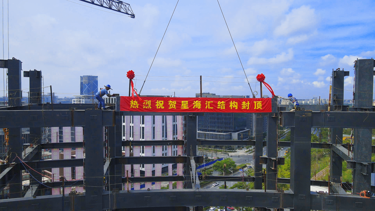 8月20日,隨著封頂鋼梁的吊裝完成擁有國內(nèi)地上最高室內(nèi)亞克力深潛池的臨港星海匯項目完成主體鋼結(jié)構(gòu)封頂,項目建設(shè)按下“加速鍵”。