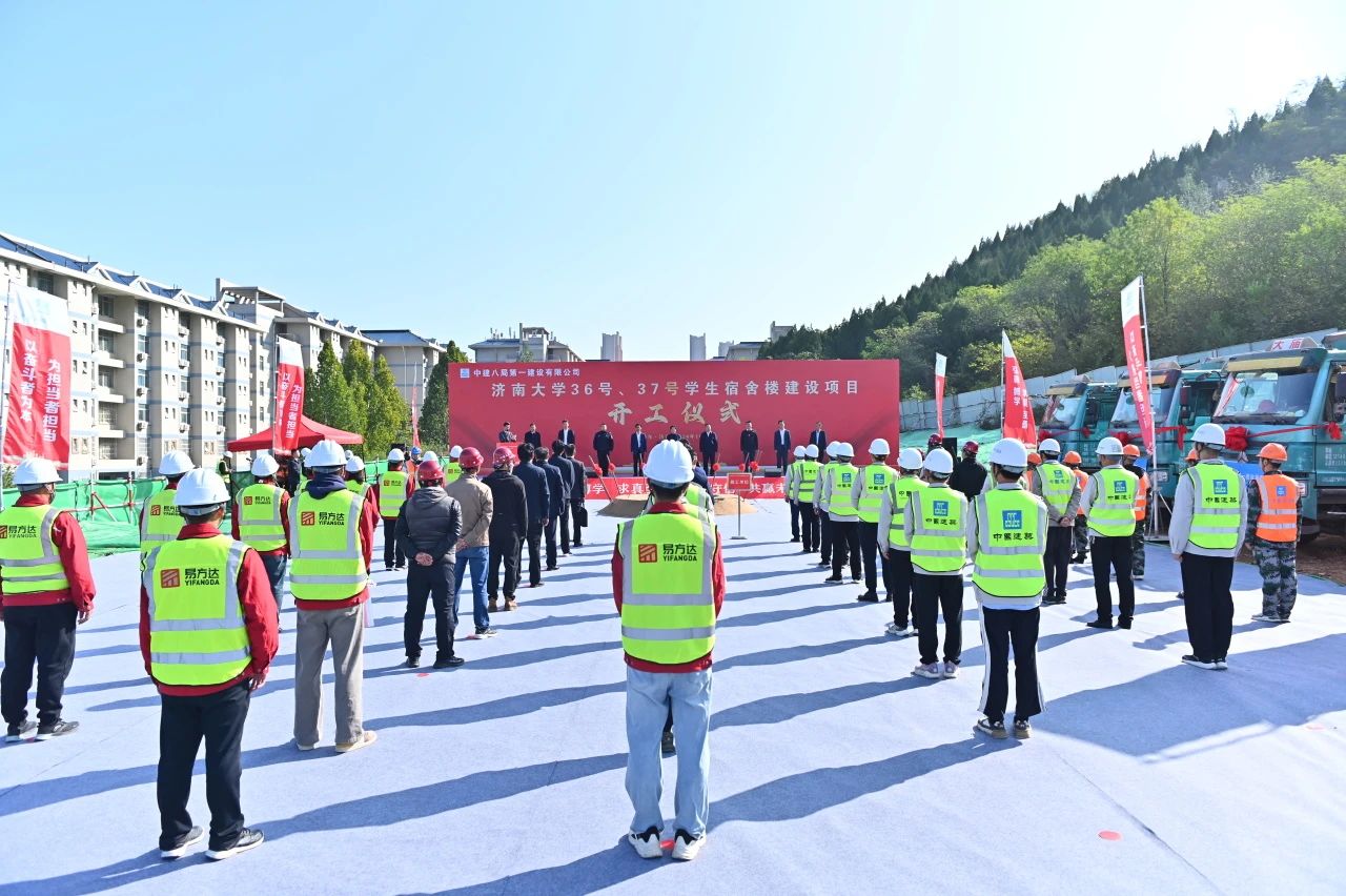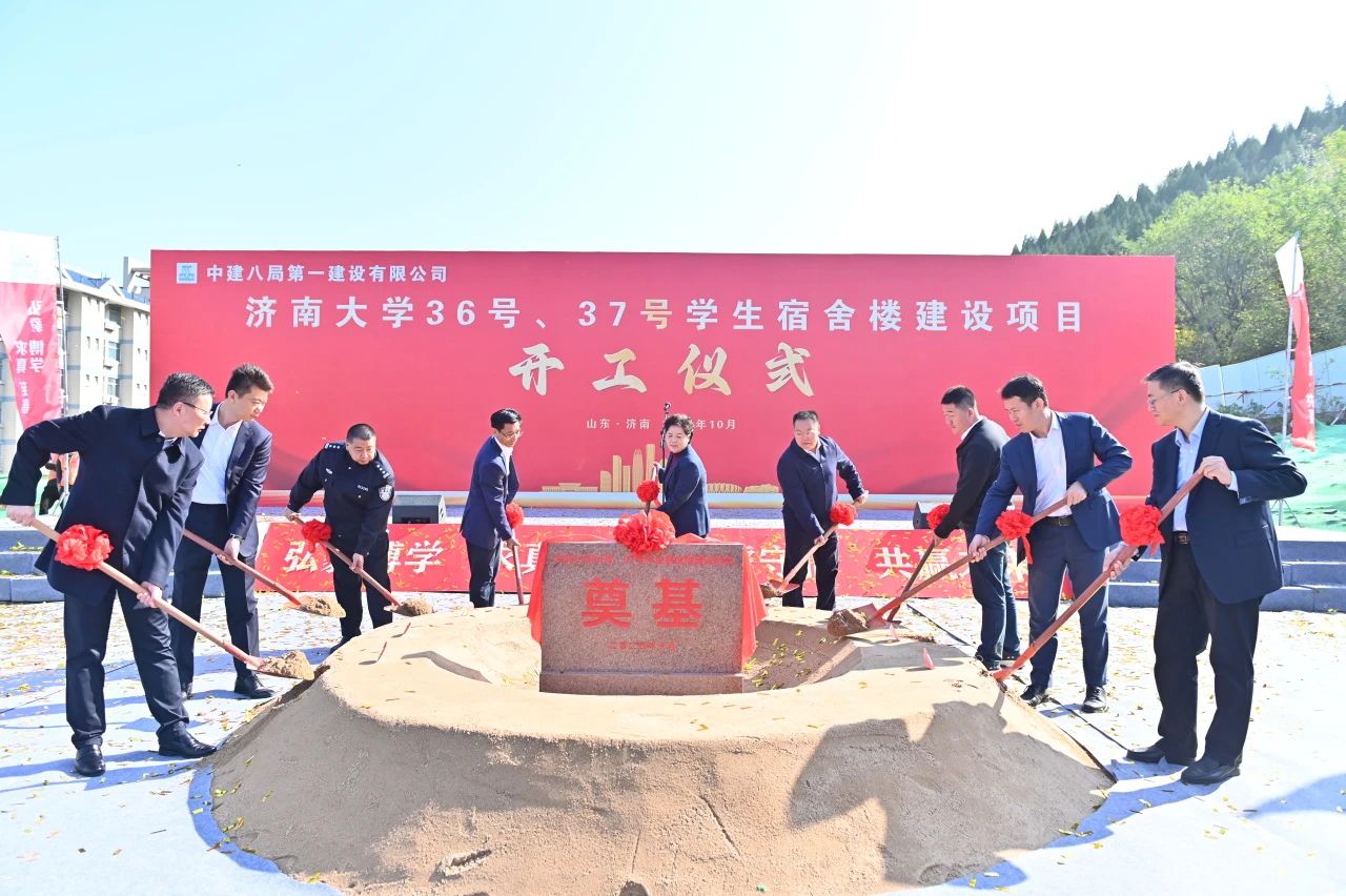 10月23日,濟(jì)南大學(xué)36號、37號學(xué)生宿舍樓項目舉行開工儀式,濟(jì)南大學(xué)黨委書記劉春華,黨委副書記、校長劉宗明,黨委常委、副校長李強,七賢街道黨工委副書記、總工會主席、武裝部部長王金龍,山東建筑大學(xué)設(shè)計集團(tuán)有限公司黨委書記梁洪峰,山東易方達(dá)建設(shè)管理集團(tuán)有限公司黨委書記、董事長、總經(jīng)理牛勇,中建八局一公司黨委書記、董事長齊朋及濟(jì)南公司相關(guān)負(fù)責(zé)人參加。