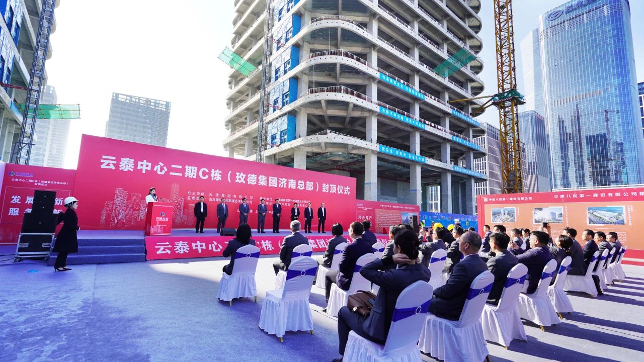濟(jì)南漢峪金融商務(wù)中心B02項(xiàng)目位于濟(jì)南市高新區(qū),總建筑面積10.2萬平方米,是濟(jì)南市重點(diǎn)項(xiàng)目包含一期、二期兩棟單體,建筑高度均為95.5米,本次封頂?shù)囊黄诠こ虒⒆鳛?/font>“山東省出口100強(qiáng)企業(yè)”玫德集團(tuán)濟(jì)南軟總部新址。