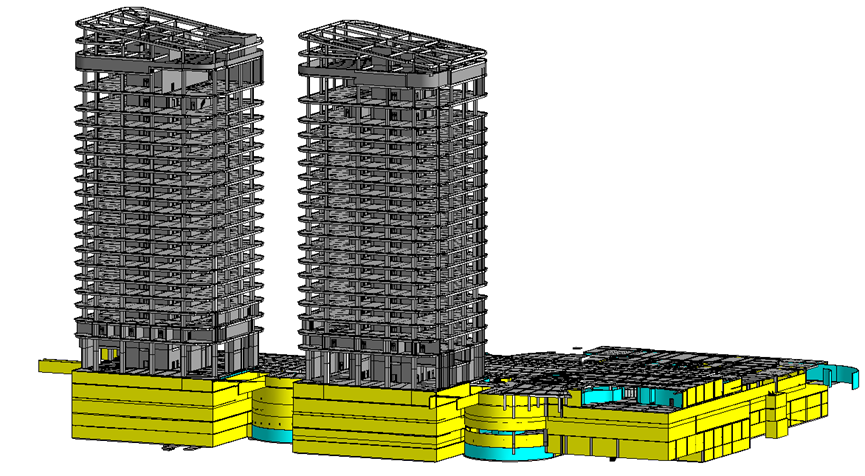項(xiàng)目主體采用裝配式施工,整體裝配率達(dá)53%,通過提前制定工序穿插計(jì)劃,實(shí)現(xiàn)裝配作業(yè)與現(xiàn)澆作業(yè)流水穿插,120天完成1800余塊,疊合板960余塊,樓承板、20層預(yù)制樓梯精準(zhǔn)安裝,采用BIM三維場布軟件對工程全生命周期超前模擬,將各專業(yè)模型合并深化,累計(jì)解決各專業(yè)穿插沖突等問題200余項(xiàng)。