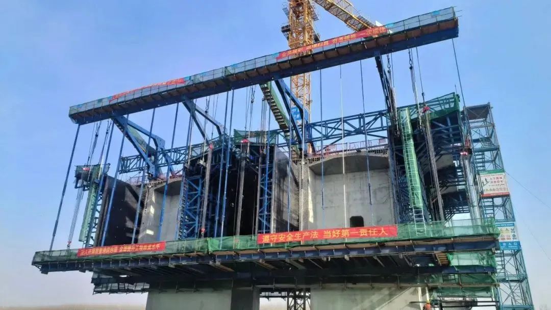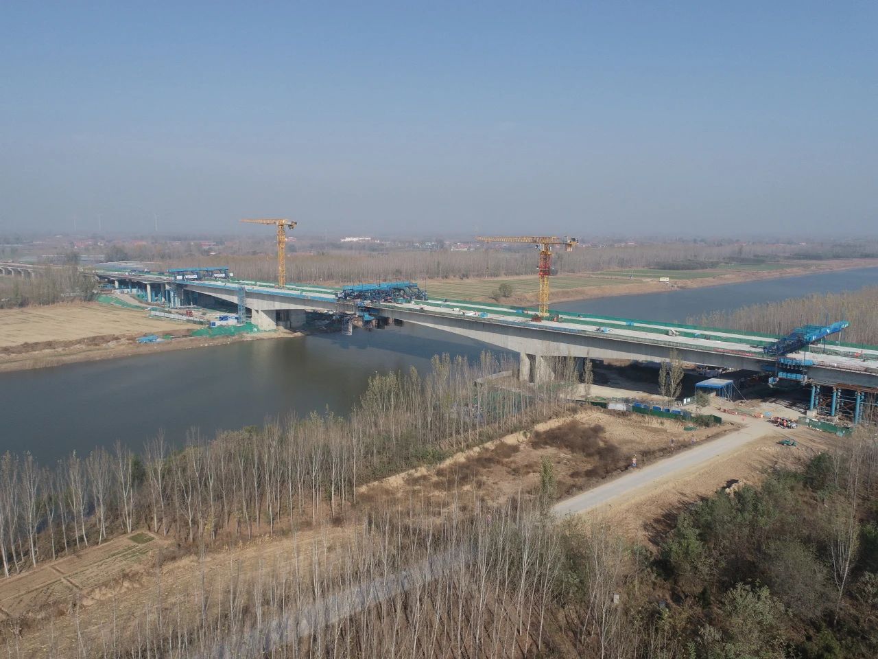 徒駭河特大橋是項目施工的重難點,全長1248.5米,共9聯(lián),單幅橋?qū)?6.5米,主跨長358.5米,最大跨徑165米,主橋采用單箱單室變截面預(yù)應(yīng)力混凝土連續(xù)梁結(jié)構(gòu)形式,是徒駭河跨徑最大連續(xù)剛構(gòu)現(xiàn)澆梁。