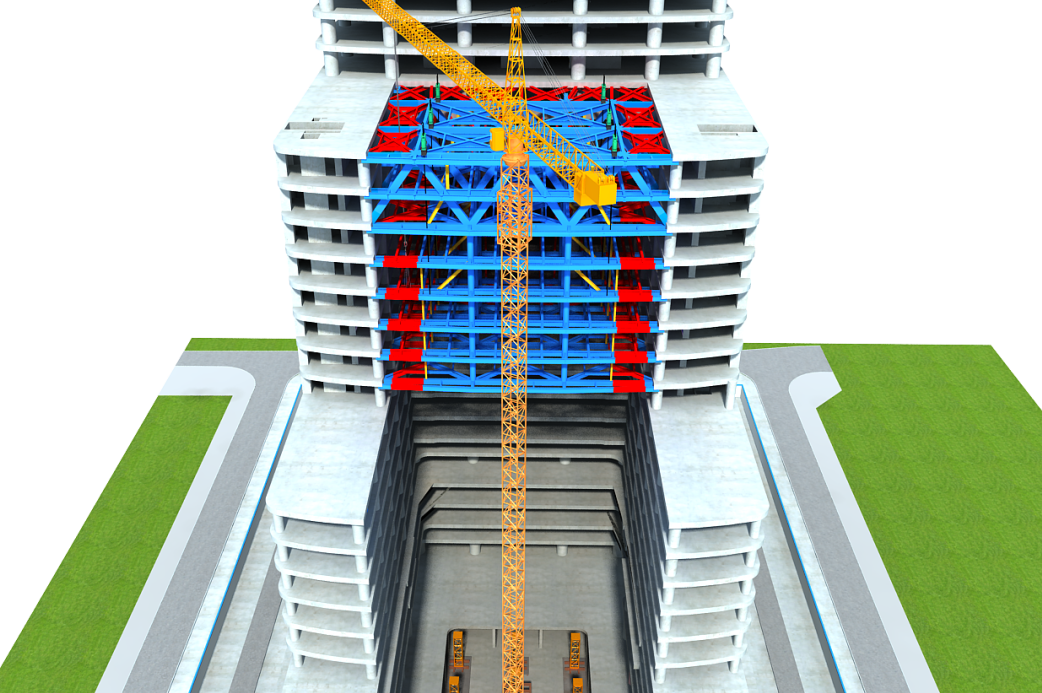 項目團隊通過模擬計算與電子設(shè)備集中控制,準確完成鋼連廊提升過程中的數(shù)據(jù)反饋和控制指令傳遞實現(xiàn)同步動作、負載均衡、姿態(tài)矯正應力控制、操作閉鎖等功能有效解決了有限空間下大跨度超高層鋼連廊施工難題。