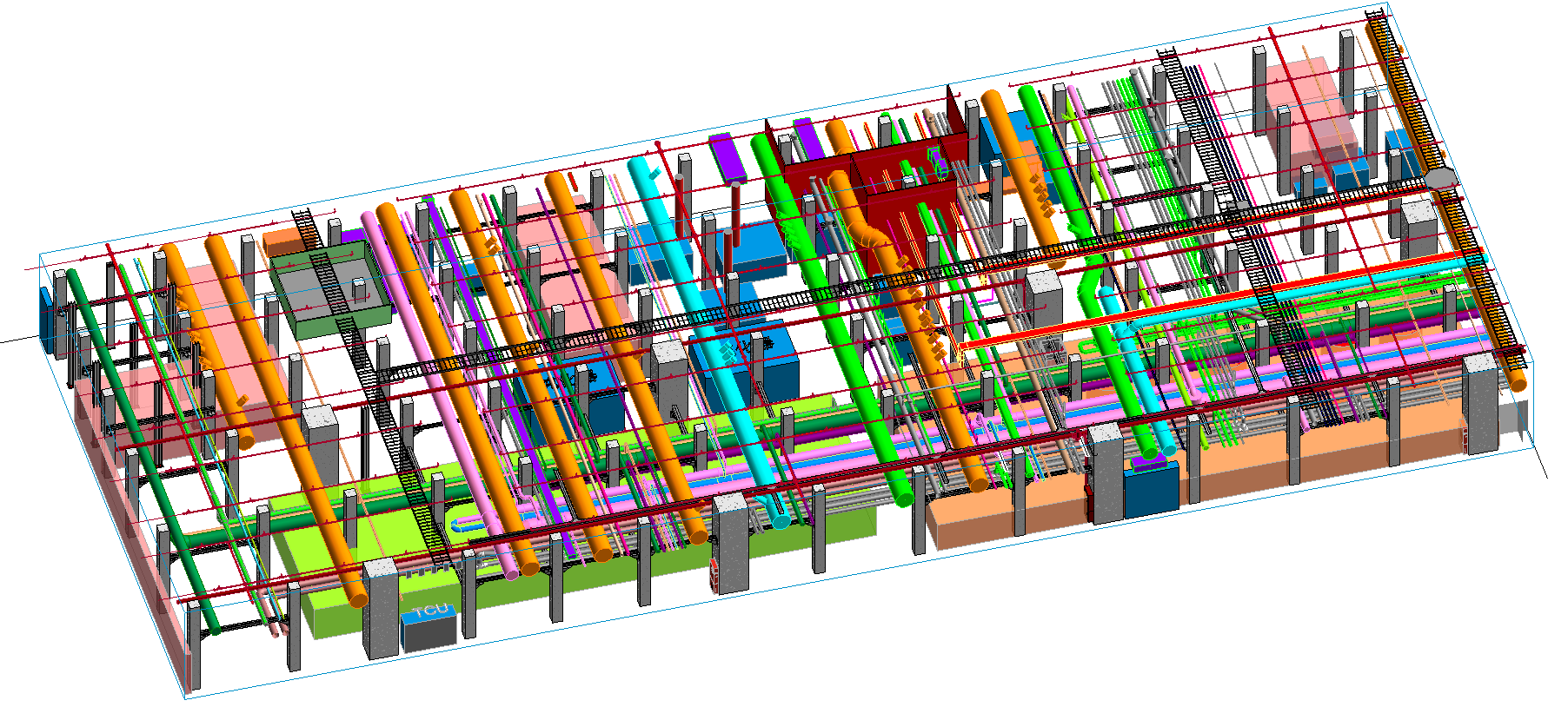 項目拆改交叉作業(yè)復(fù)雜,廠房原有特氣、純水管道與新裝鋼結(jié)構(gòu)存在空間沖突,項目利用BIM技術(shù)提前模擬管線走向,累計優(yōu)化管道43處標(biāo)高、178處走向,實現(xiàn)各工序無縫銜接,保障改建施工一次成優(yōu)。
