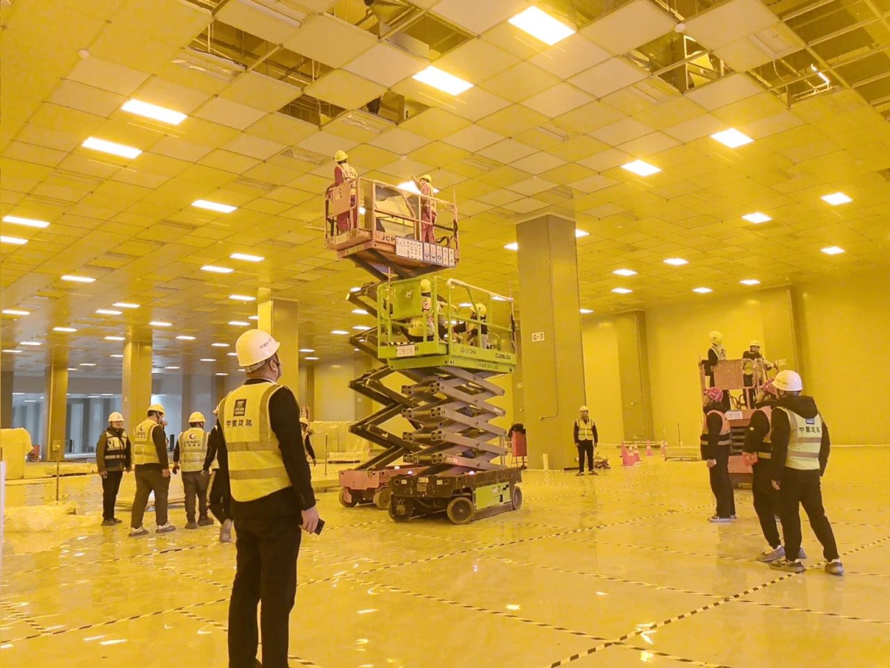 項目存在大量高空作業(yè),現(xiàn)場同時應(yīng)用近200臺登高車,高空作業(yè)安全管控難度較高,項目配置20名安全員全天候巡查,嚴(yán)格落實佩戴雙掛鉤安全帶,增設(shè)生命繩、鋪設(shè)PE防滑墊等舉措,為現(xiàn)場作業(yè)安全保駕護航。