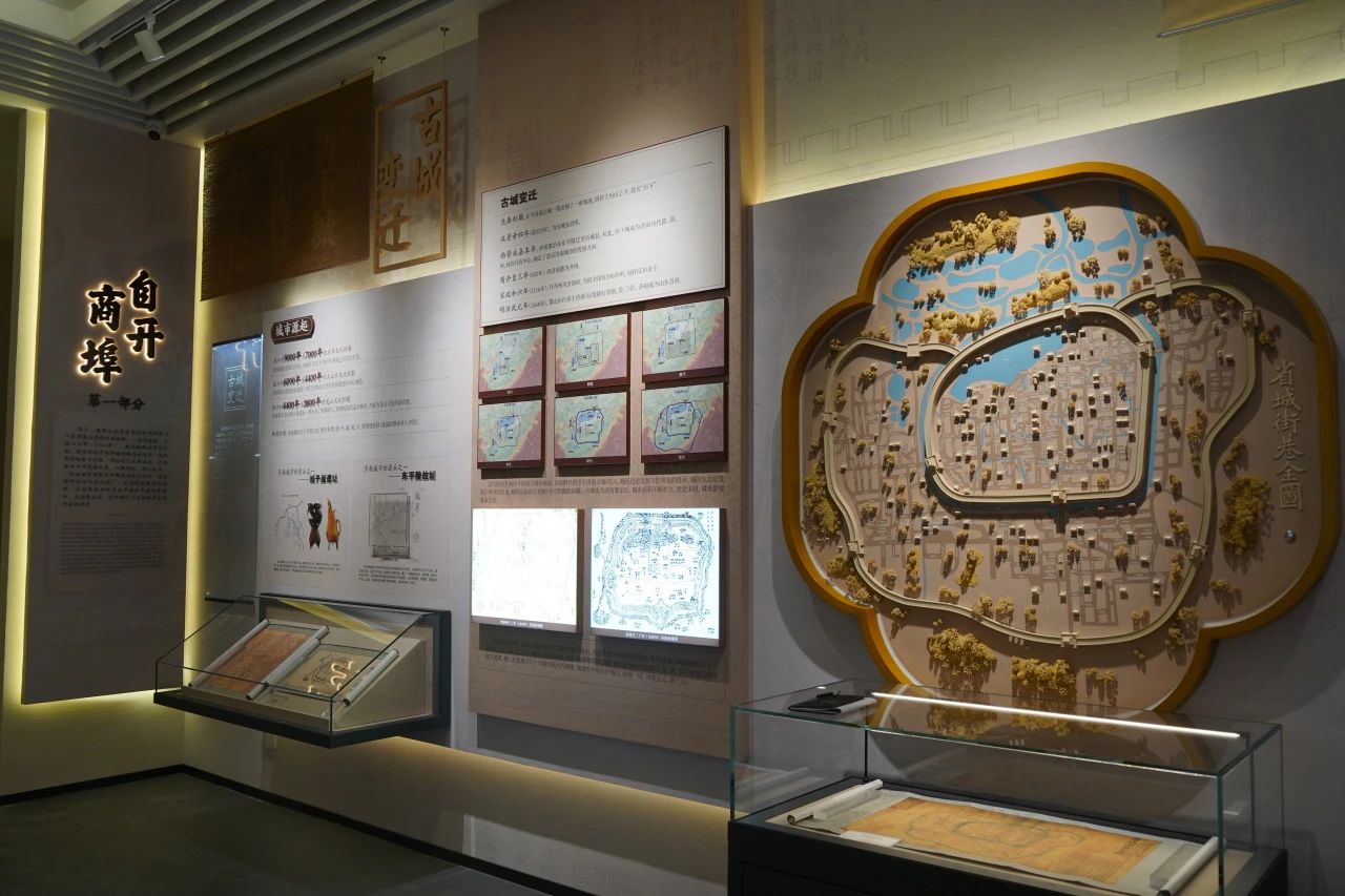 在一樓,老式火車頭及復(fù)古車廂搭載檀香木箱、老式打字機(jī)等“洋貨”文物,瞬間將觀眾拽入歷史現(xiàn)場,動態(tài)沙盤通過燈光流轉(zhuǎn)變遷勾勒商埠區(qū)從傳統(tǒng)街巷到現(xiàn)代路網(wǎng)的蛻變軌跡,結(jié)合老舊照片串聯(lián)的時(shí)間線,再現(xiàn)1904年開埠盛況。