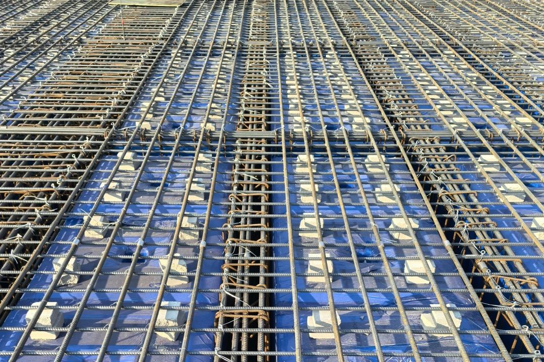 為保證大跨度下結(jié)構(gòu)強(qiáng)度滿足要求,項(xiàng)目采用LPM預(yù)應(yīng)力空心板技術(shù),有效降低訓(xùn)練館二層頂板結(jié)構(gòu)自重,自主研發(fā)新型抗浮施工工藝,將上部鋼筋、肋梁鋼筋、下部鋼筋與空心箱體緊密綁扎形成整體,再于底部模板打出“固定孔”,將上部結(jié)構(gòu)與下部架體緊密連接,保障了箱體結(jié)構(gòu)整體穩(wěn)固。