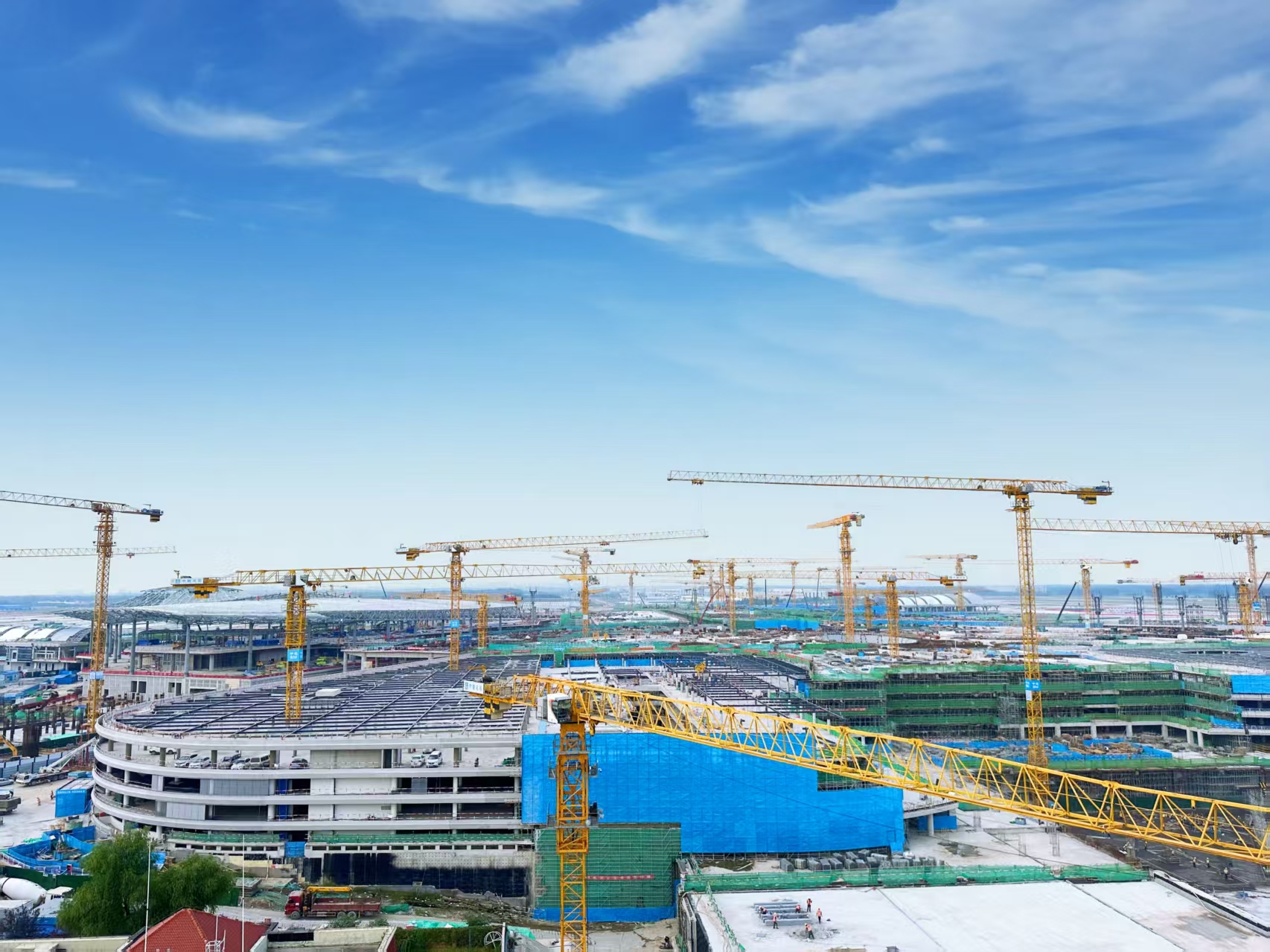 作為聯(lián)合體牽頭單位,一公司整體策劃現(xiàn)場平面布置及工序穿插,梳理施工關鍵路線,劃分“首開、共構、合圍”3大區(qū)域。在不受穿插影響的“首開區(qū)”,項目集中優(yōu)勢資源開展“大流水”施工,高峰期施工人數(shù)超1萬人,并科學布置場區(qū)內(nèi)24臺塔吊,在滿足機場磁環(huán)境及限飛區(qū)高度限制的同時,實現(xiàn)施工效率最大化。