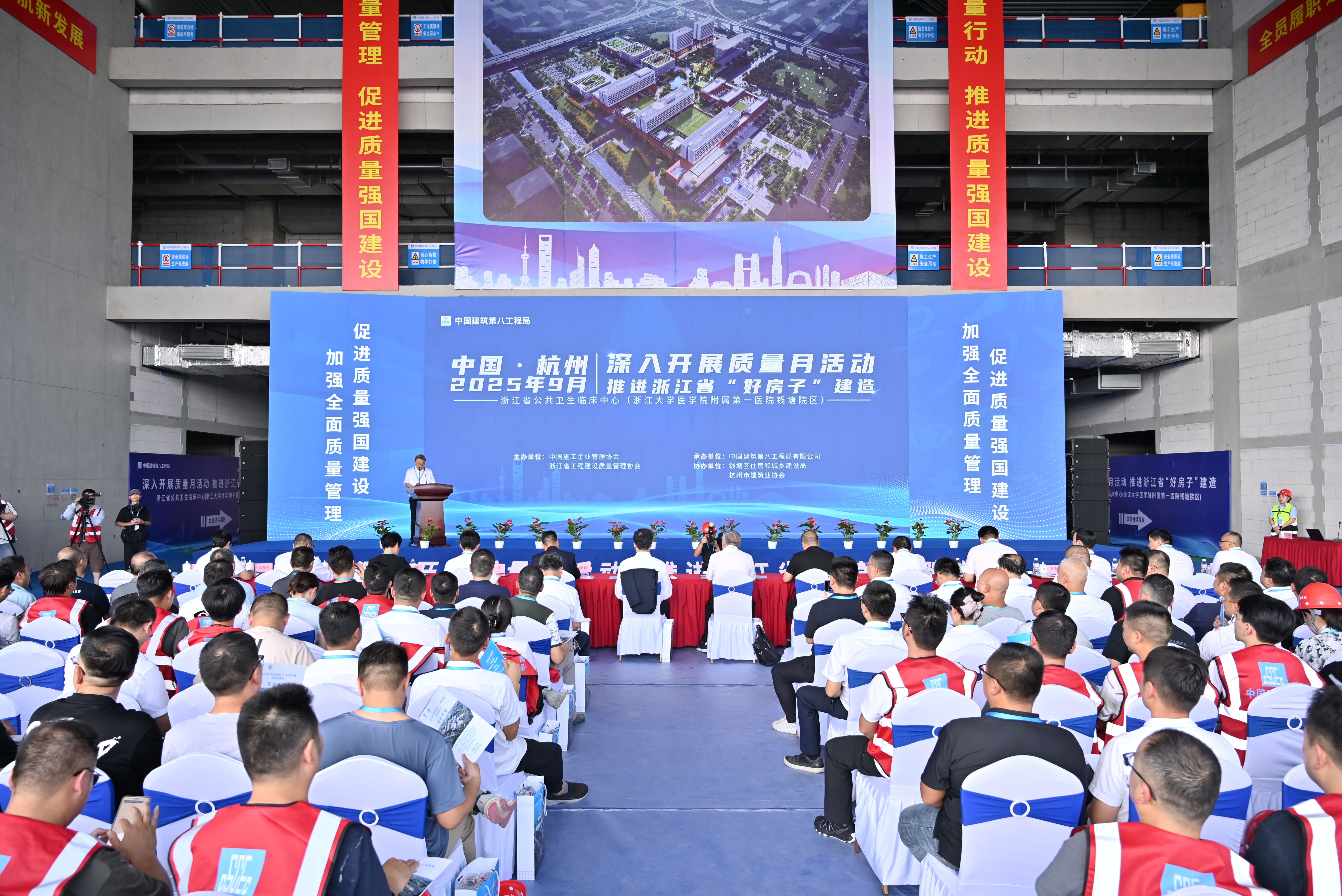 9月16日,浙江省“醫(yī)療好房子”工程質(zhì)量現(xiàn)場觀摩會在中建八局一公司浙江大學(xué)醫(yī)學(xué)院附屬第一醫(yī)院錢塘院區(qū)項目舉行?;顒佑芍袊┕て髽I(yè)管理協(xié)會、浙江省工程建設(shè)質(zhì)量管理協(xié)會主辦,中建八局承辦,錢塘區(qū)住房和城鄉(xiāng)建設(shè)局、杭州市建筑業(yè)協(xié)會協(xié)辦。浙江省住房和城鄉(xiāng)建設(shè)廳、浙大一醫(yī)院、中建八局、杭州市建筑業(yè)協(xié)會、錢塘區(qū)衛(wèi)健局等相關(guān)負(fù)責(zé)人,浙江省各地市行業(yè)主管部門、行業(yè)協(xié)會、企業(yè)代表等共400余人參加。